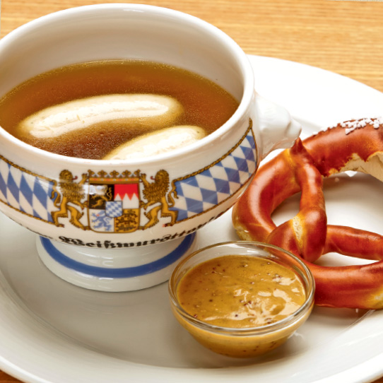 Bavarian white sausages (2pcs) with sweet mustard and pretzel