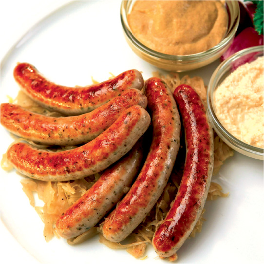 Nuremberg sausages (6pcs) with Bavarian cabbage and mustard